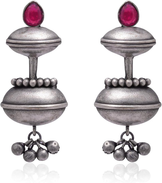 Mirror Studded Handcrafted Tasselled Design Oxidised Silver Plated Afghan Necklace Jewellery Set