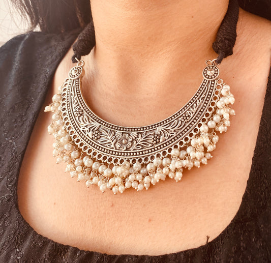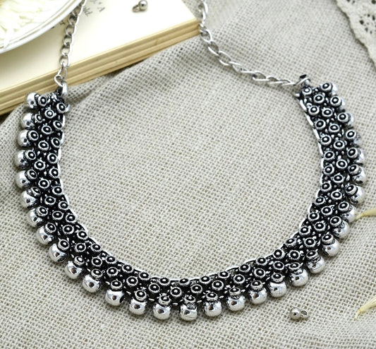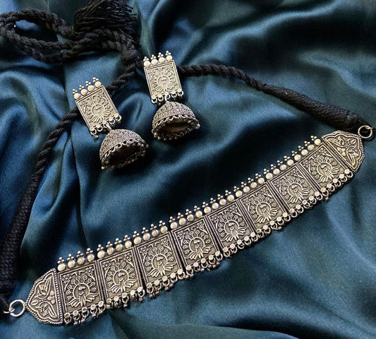 Silver-Plated Ghungroo Studded Antique Filigree Work Tribal Jewellery Set