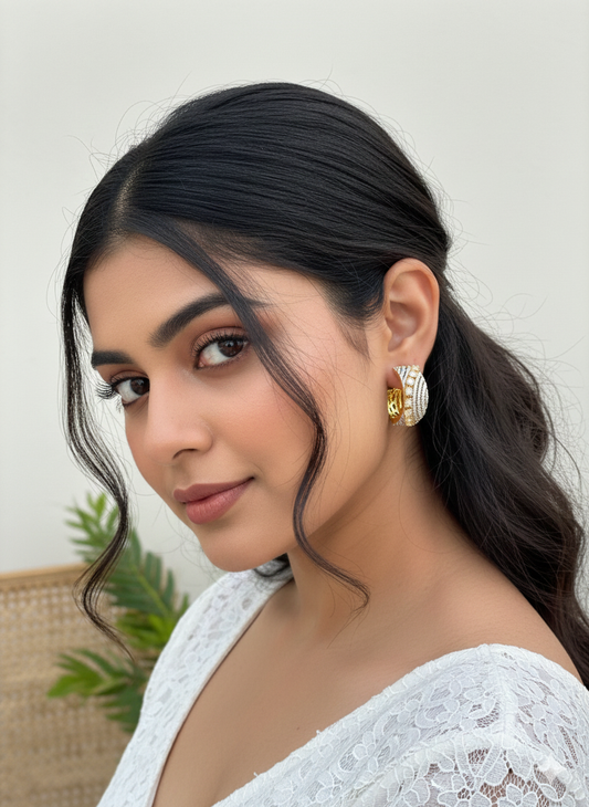 TAJ MAHAL | Monalisa Stone silver Jhumka with white pears n