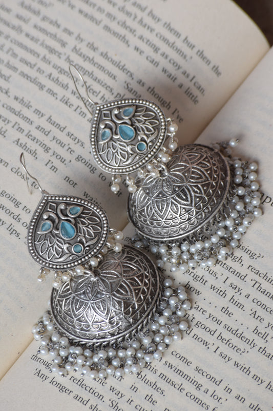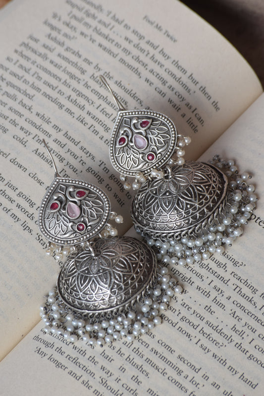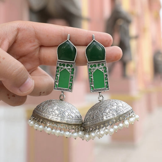 TAJ MAHAL | Monalisa Stone silver Jhumka with white pears n