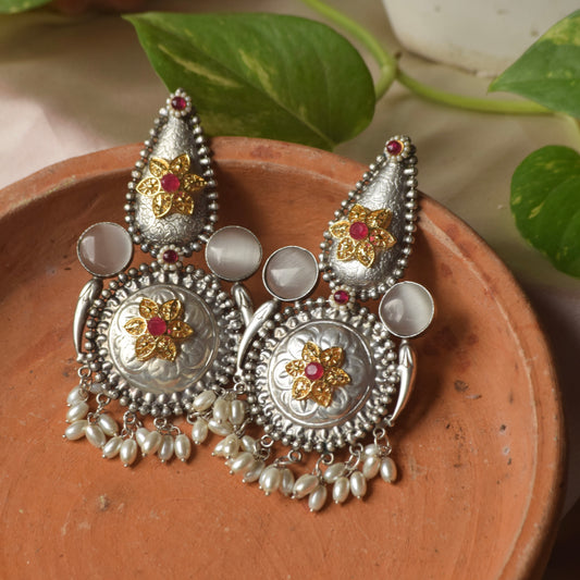नूर | चांदी सफेद मोती के साथ लंबा झुमका