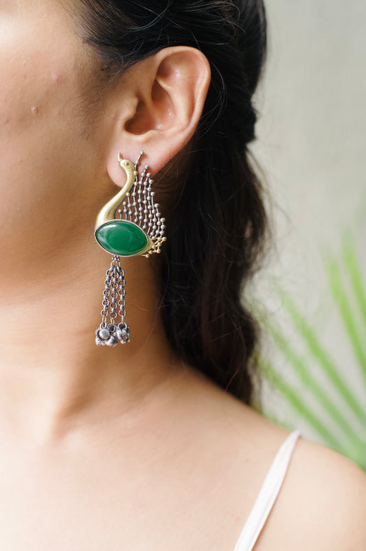 Dual tone peacock Monalisa Stone Earrings with tassel Ghungru