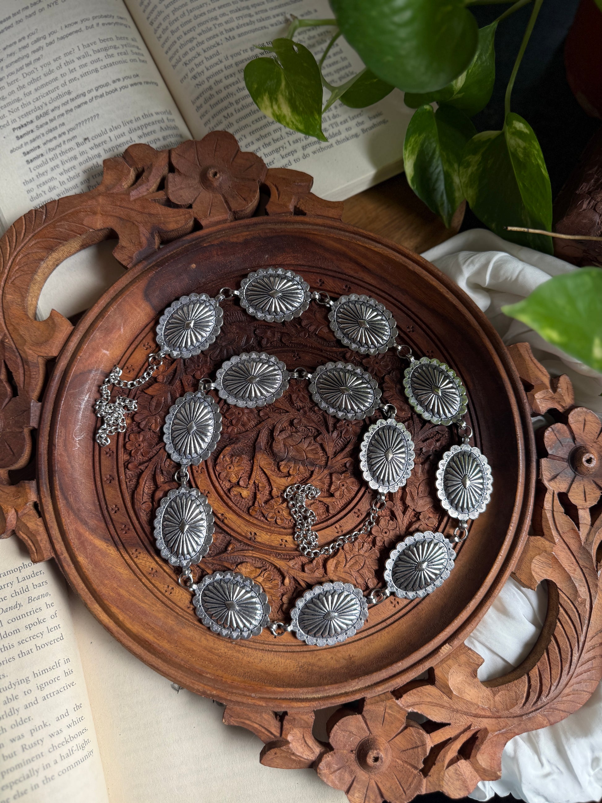 ऑक्सीडाइज़्ड सिल्वर-प्लेटेड मिरर ज्वेलरी सेट